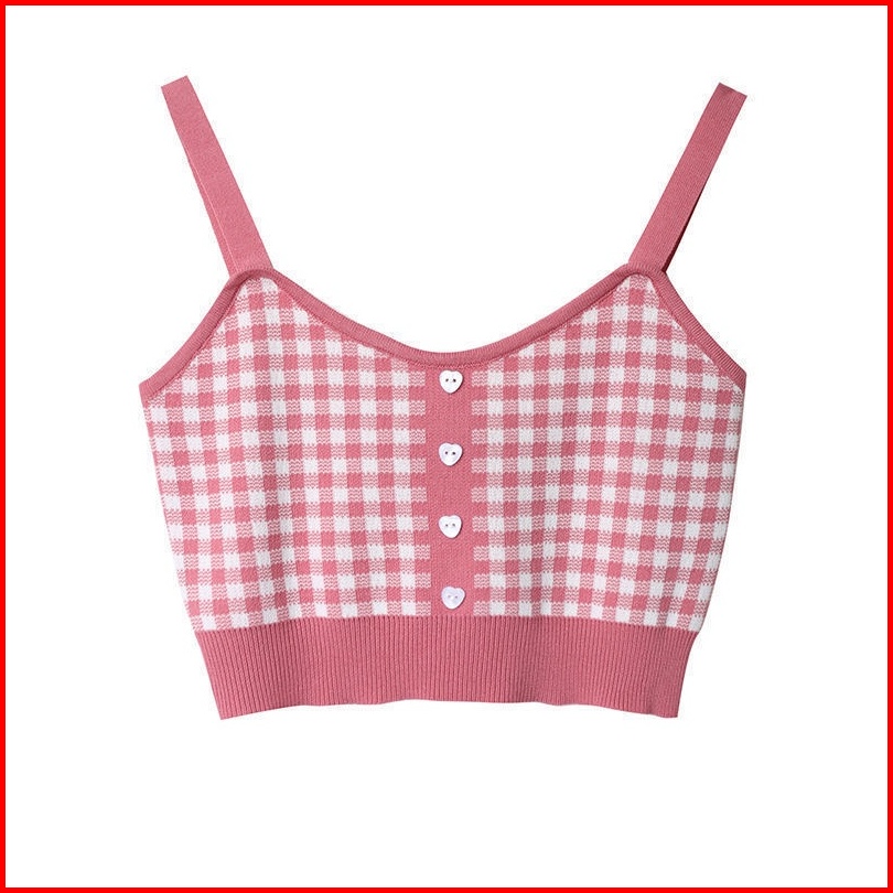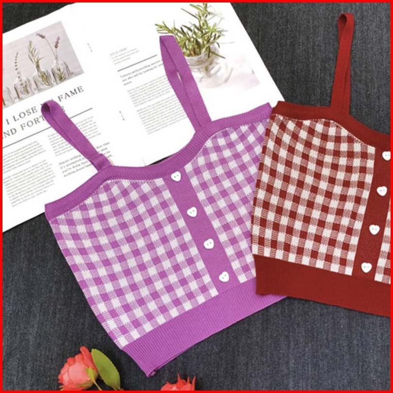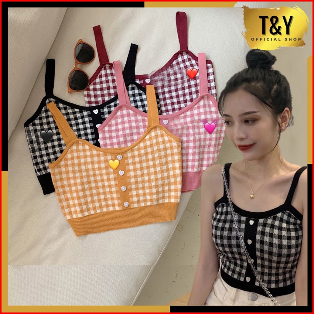 T Y Tank Top Crop Wanita Motif Kotak 6611 Korean Square Knit Tanktop Fashion Korea