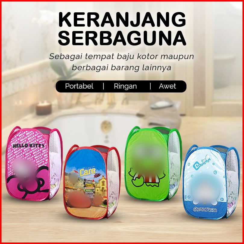 Laundry Bag Import Ukuran 30cm X 50cm Keranjang Baju Lipat Karakter - Keranjang Baju Kotor Lipat Terpopular High Quality