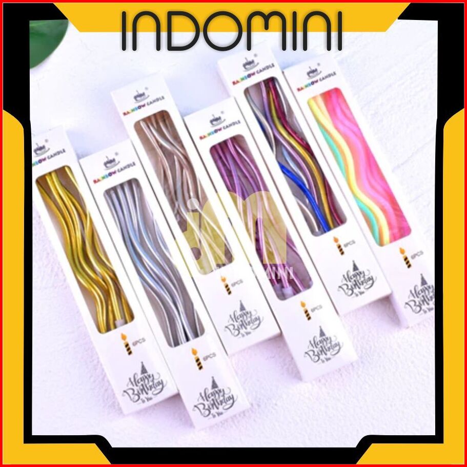 Indomini Lilin Ulang Tahun Wavy Lilin Spiral Metalik Birthday Candle Premium 6 Pcs R908