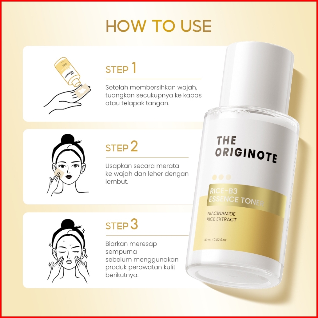 The Originote Rice-b3 Essence Toner - Mencerahkan Melembapkan Menyejukkan Kulit Essence Toner Dengan Rice Extract Untuk
