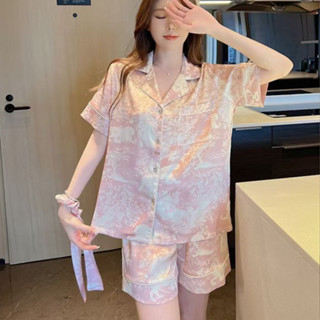 2025 piyama lukisan tinta sutra es baru piyama wanita setelan lengan pendek longgar pakaian rumah kasual