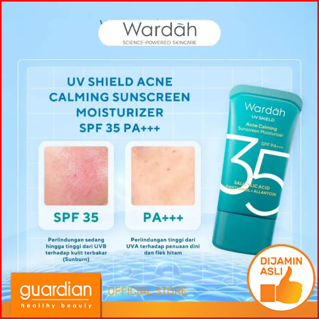 Wardah Uv Shield Acne Calming Sunscreen Moisturizer Spf 35 Pa - Sunscreen Untuk Komedo Jerawat Dan Bekas Jerawat Kulit B