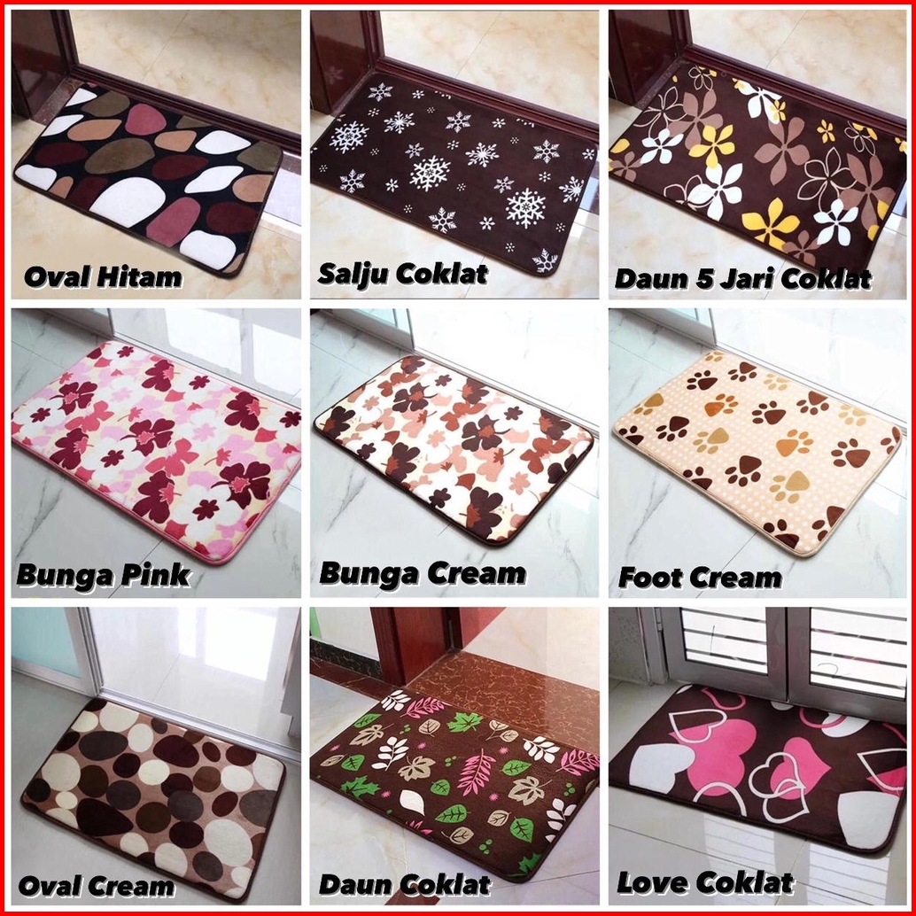 Osm - H8014 Keset Kaki Bunga Bunga Anti Slip Bahan Memory Foam Menyerap Kualitas Bagus