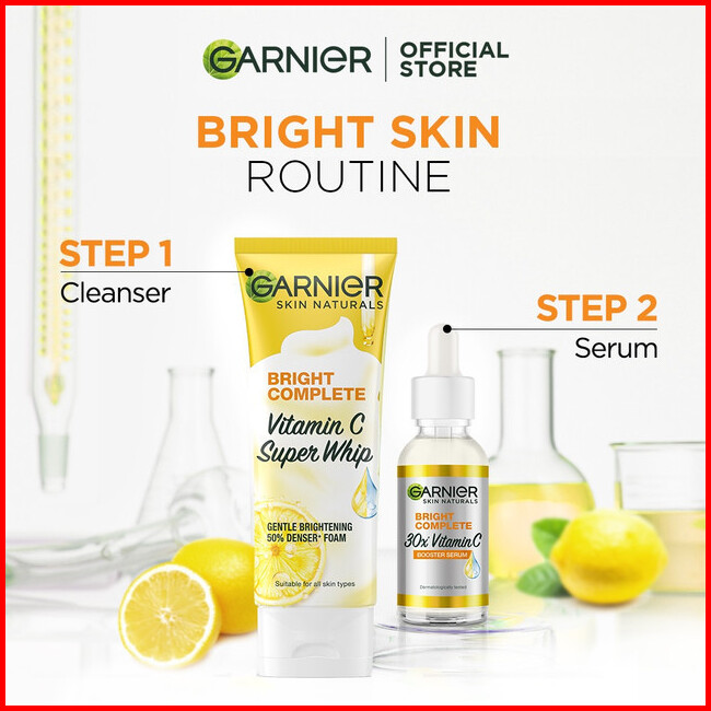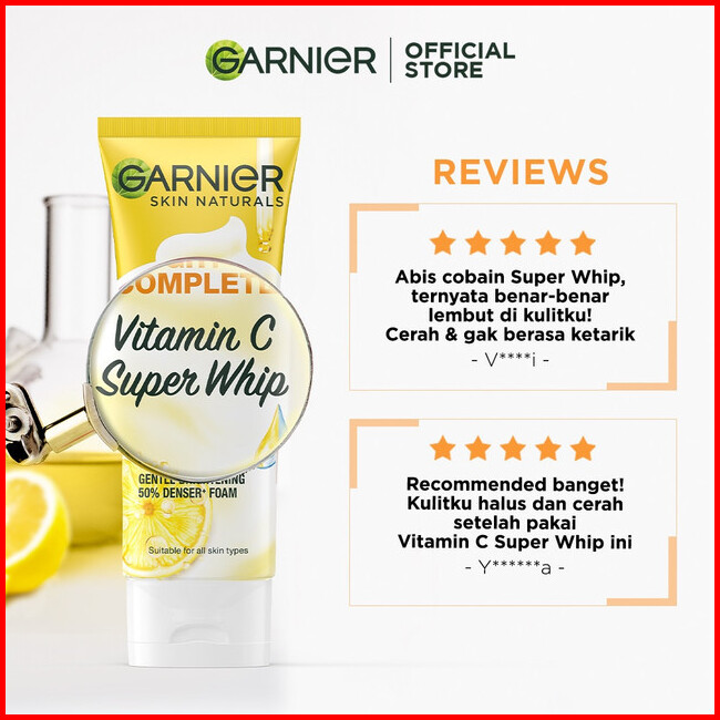 Paket Hemat Isi 2 Garnier Facial Wash Bright Complete Vitamin C Super Whip Foam Face Wash 100ml Skincare Pembersih Wajah