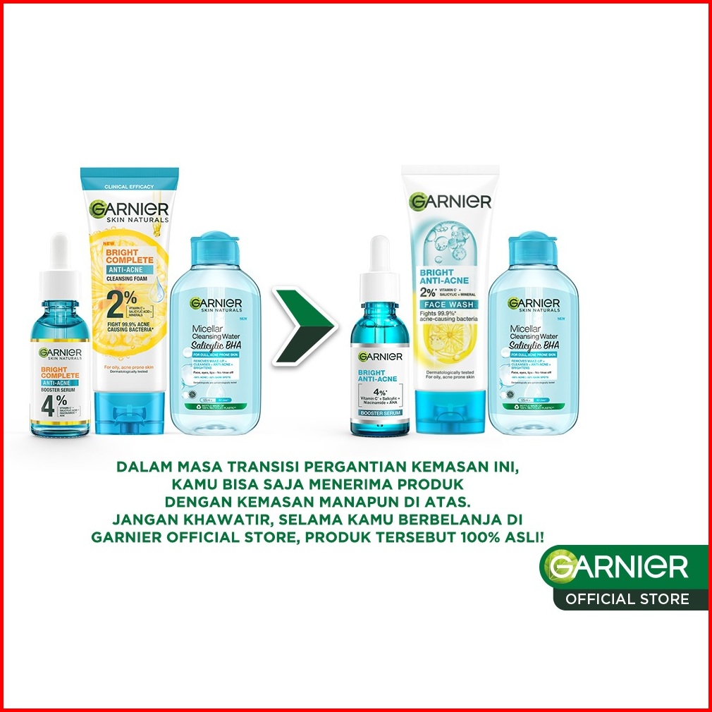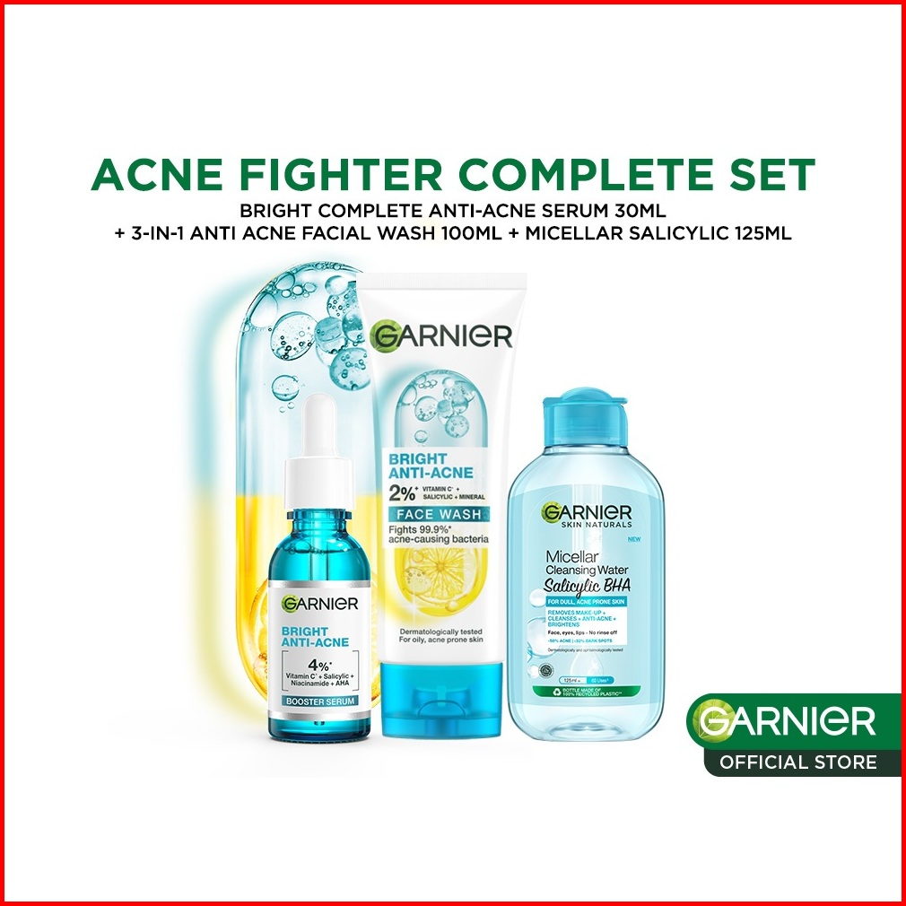 Paket Skincare Garnier Bright Complete Anti Acne Complete Set Untuk Maksimal Lawan Jerawat Dan Bekas Jerawat Serum Jeraw