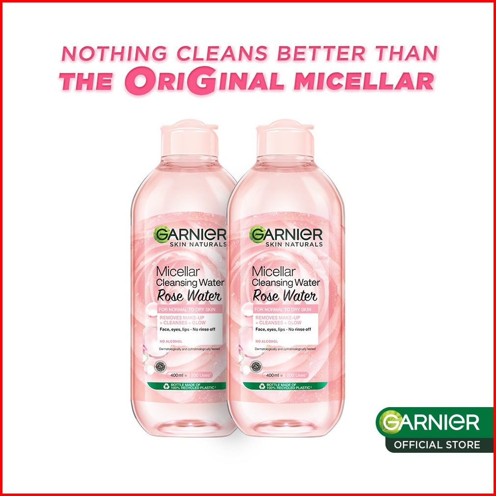Paket Hemat Isi 2 Garnier Micellar Water Rose Skincare 400ml Skincare Cleansing - Pembersih Wajah Make Up Waterproof Air