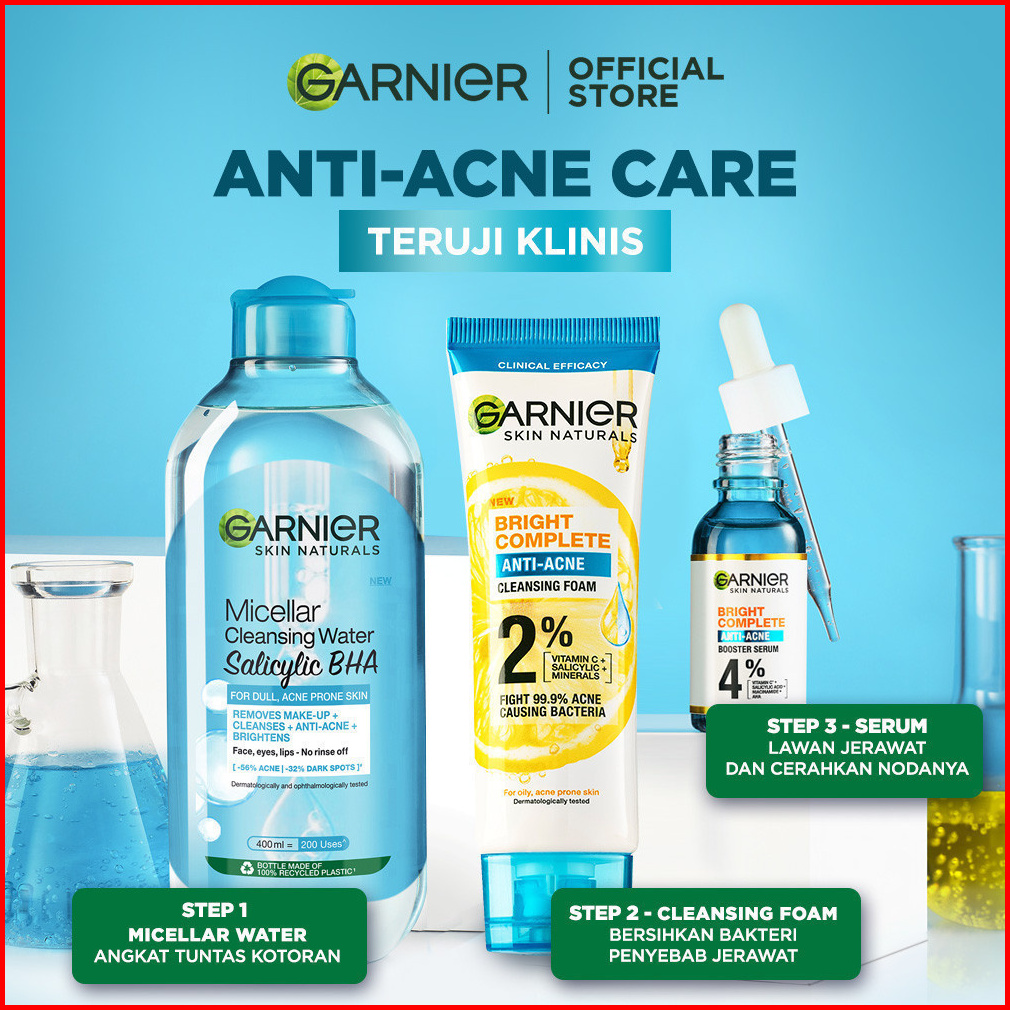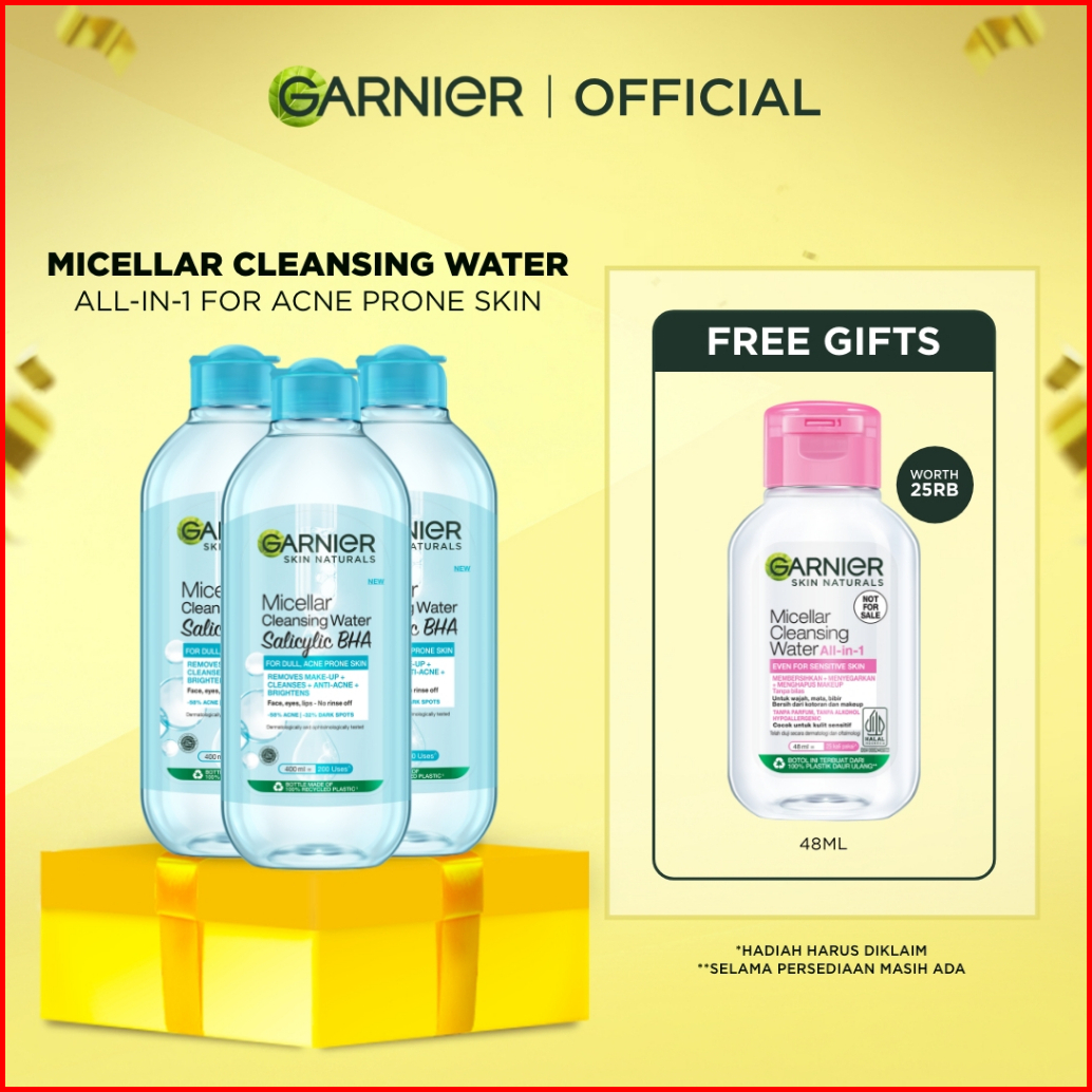 Paket Hemat Isi 3 Garnier Micellar Water Blue Salicylic Acid 400ml Skincare Cleansing - Skincare Pembersih Wajah Make Up