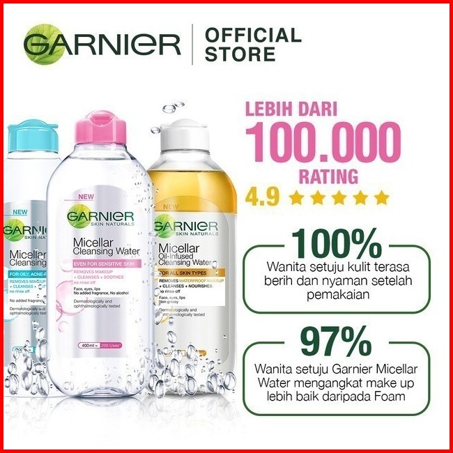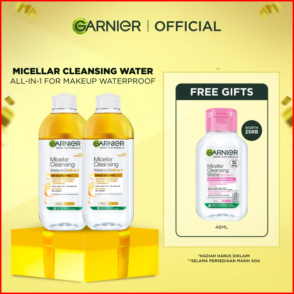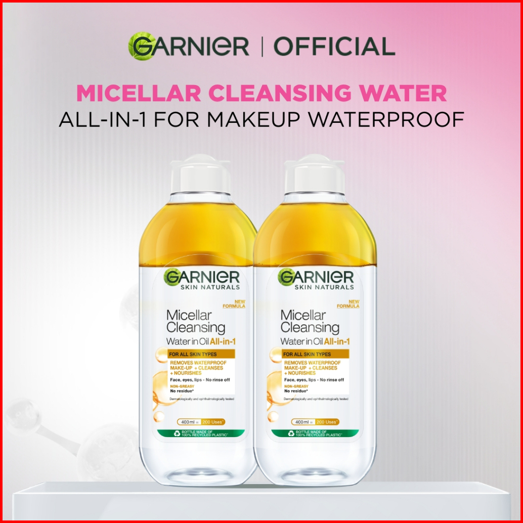 Paket Hemat Isi 2 Garnier Micellar Water Oil-infused Skin Care 400ml Skincare Cleansing - Pembersih Wajah Make Up Waterp