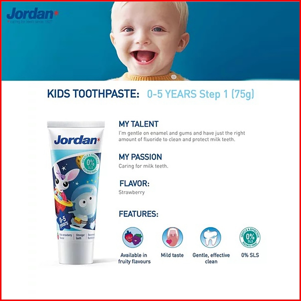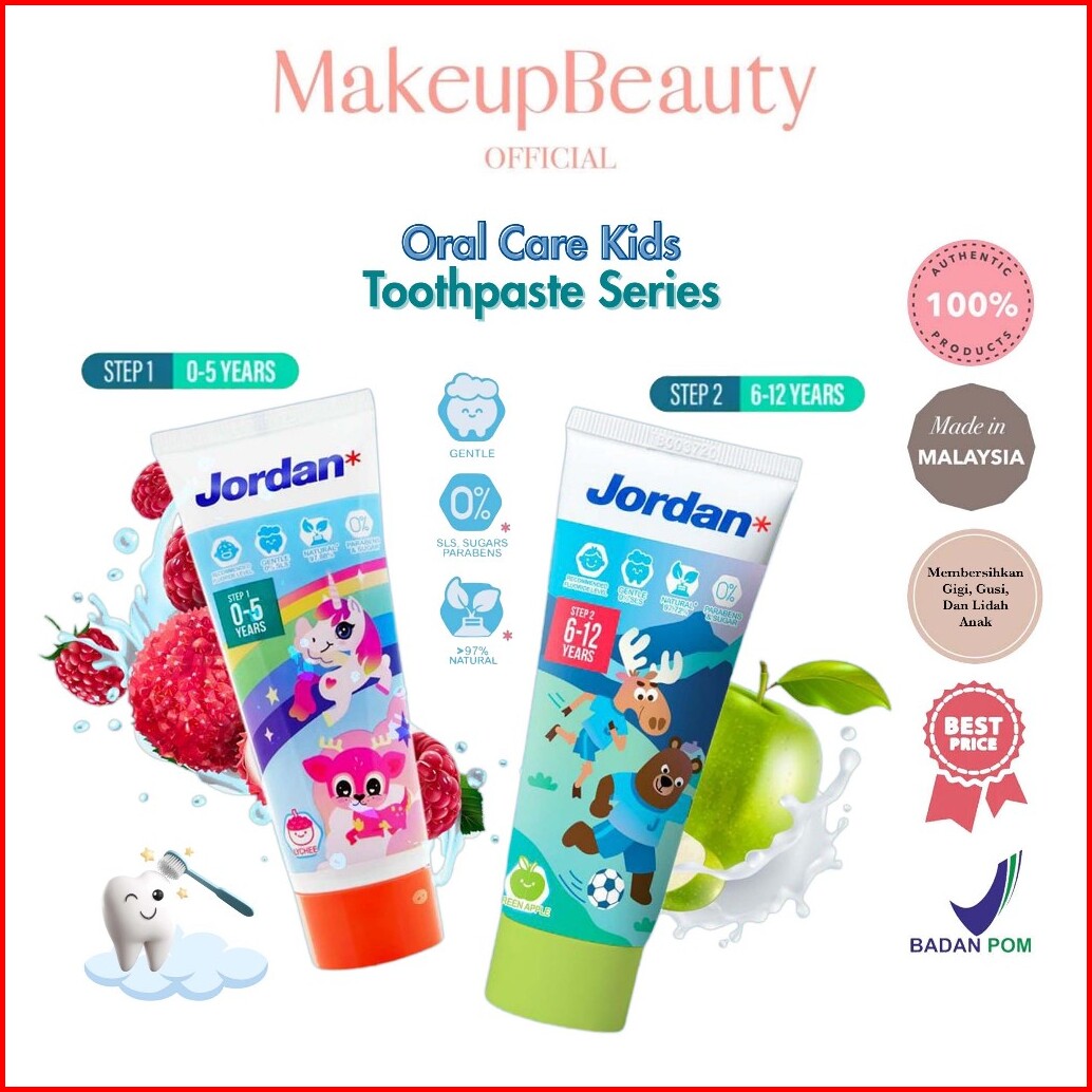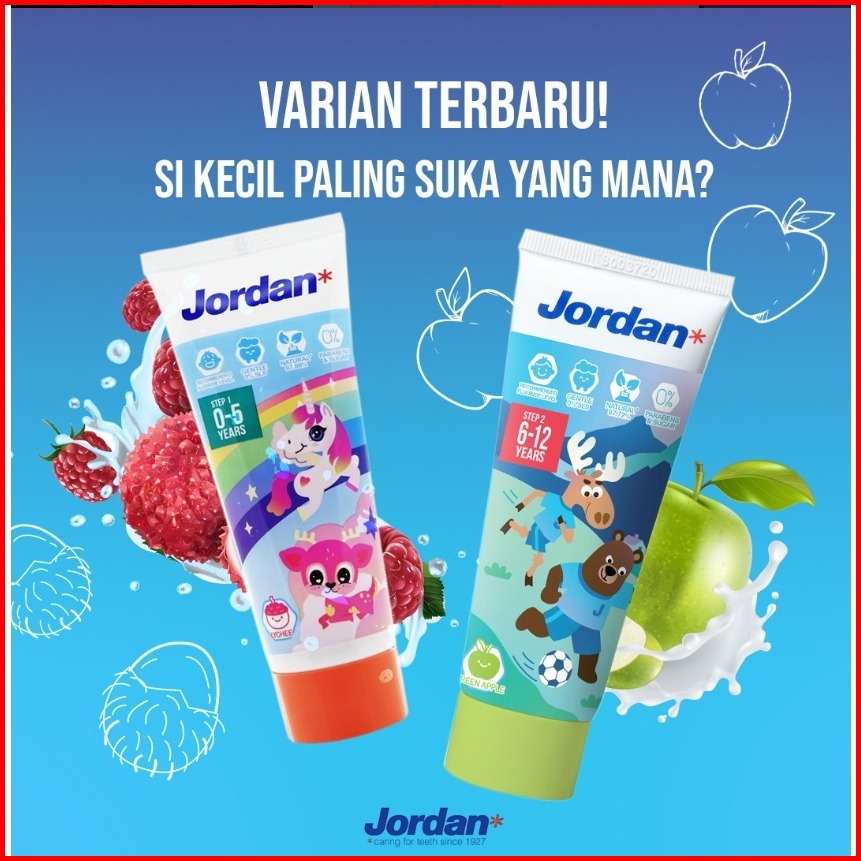 Jordan Kids Toothpaste Milk Teeth Step 1 0-5 Years Permanent Teeth Step 2 6-12 Years - 75g Pasta Odol Gigi Anak Fluoride