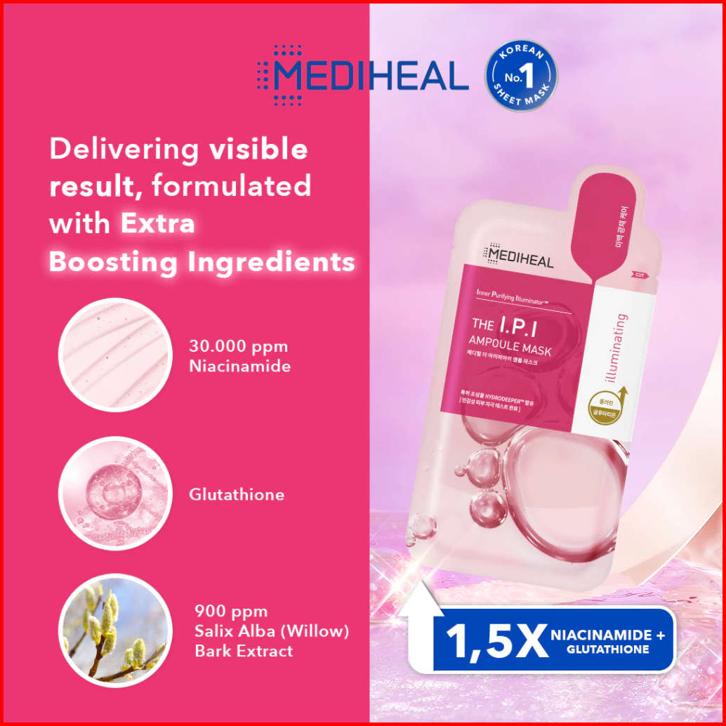 IPI Brightening, Vita Lightbeam, NMF Aquaring, Collagen Impact, MDH Teatree Care, MDH The E.G.T Mask, MDH Madecassoside, H.P.A Glowing Mask