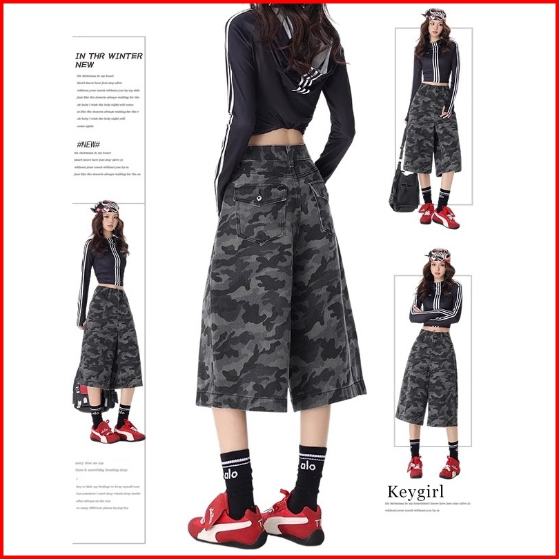 Keygirl Baggy Jorts Jeans Short Celana Denim Pendek Celana Jeans Jorts Panjang 7 8 Huijau Terbaru
