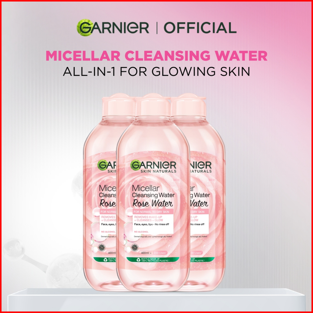 Paket Hemat Isi 3 Garnier Micellar Water Rose Skincare 400ml Skincare Cleansing - Pembersih Wajah Make Up Waterproof Air