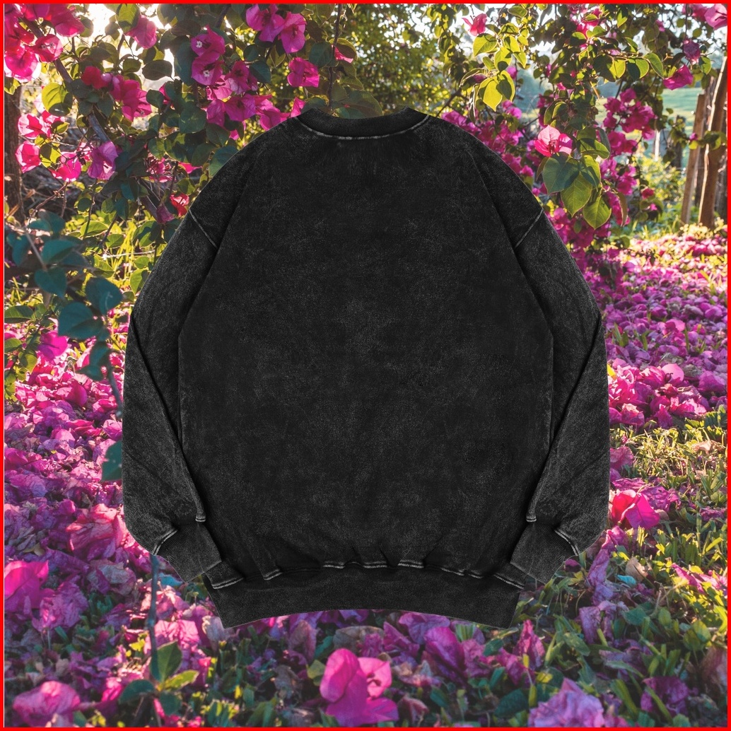 Woodlays Crewneck Sweater Reguler Black Washing Flower Weed