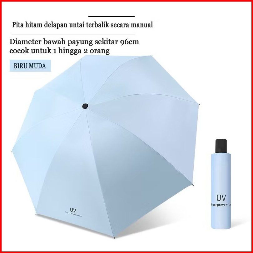 Payung Anti Uv Korea Style Anti Panas Ultra Violet Anti Hujan Payung Lipat Anti Sinar Uv Protection Motif Polos