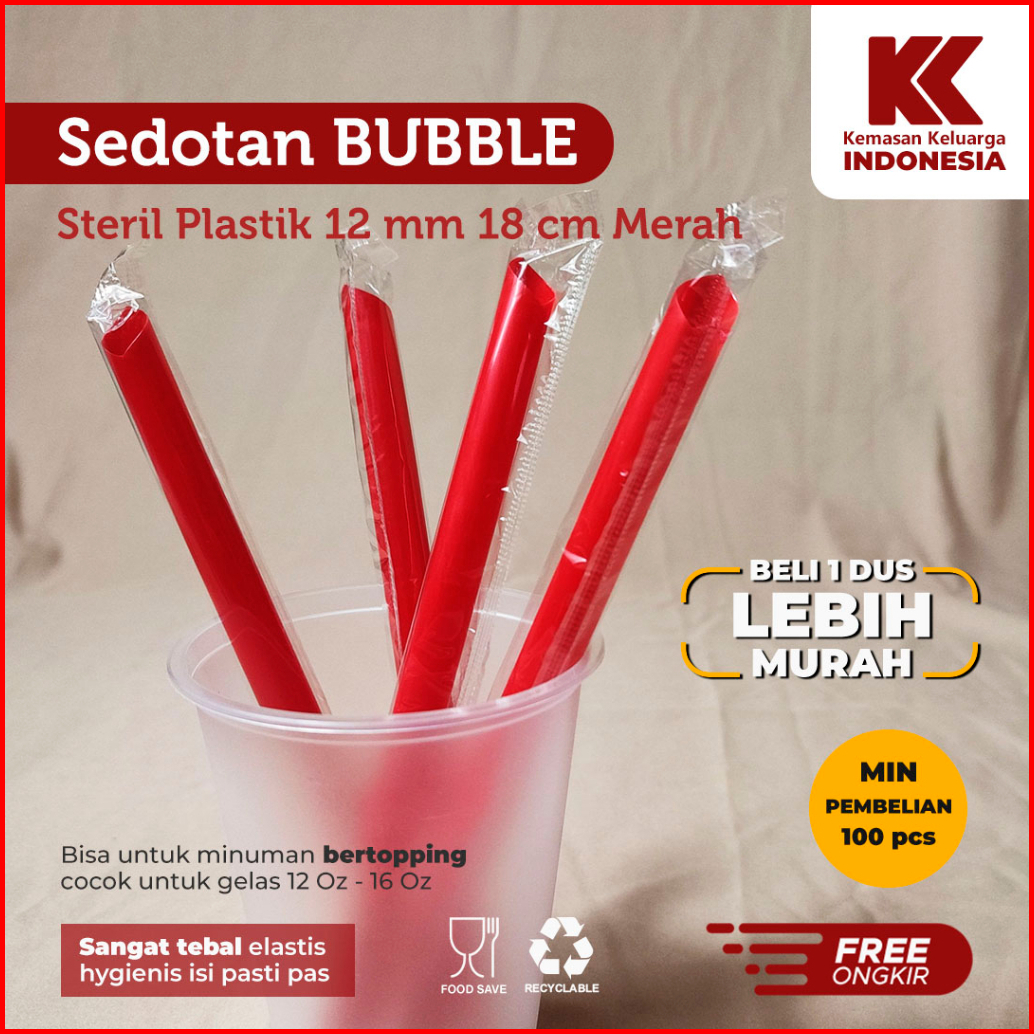 Sedotan Bubble Steril 12mm 18cm Sedotan Plastik Sedotan Boba 100pcs