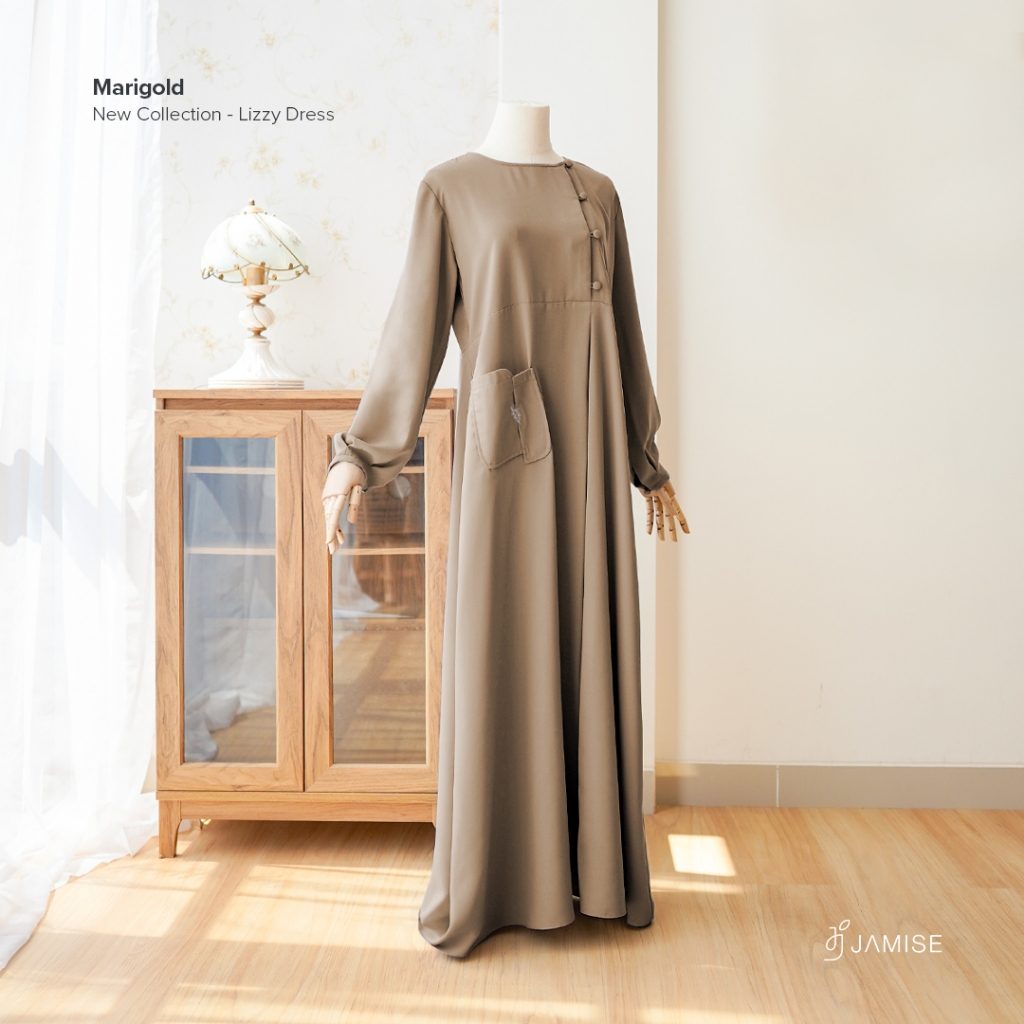 Jamise | Lizzy Dress | Gamis Lebaran Detail Bordir Bunga Saku