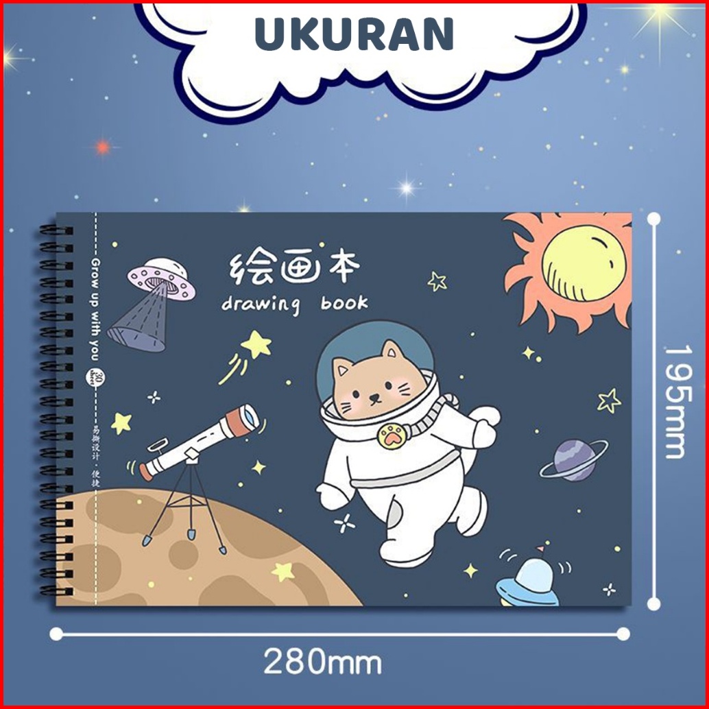 Aimilo Buku Gambar Anak Sketchbook A4 Drawing Book Astronot Jilid Spiral Kertas Tebal 30 Lembar