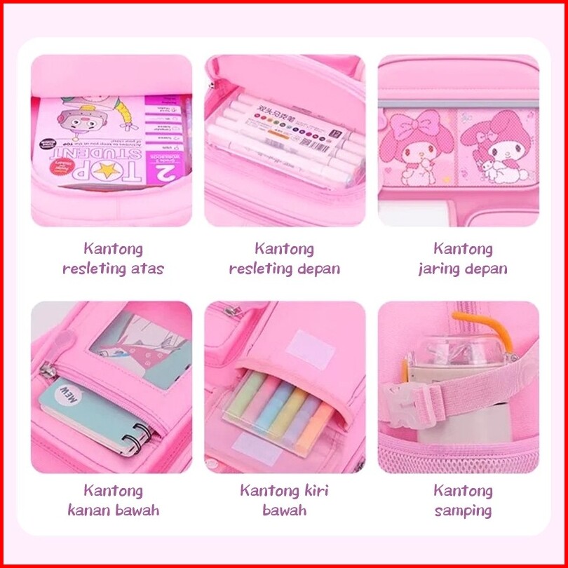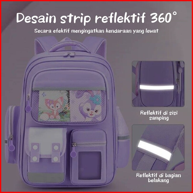 Aimilo Tas Sekolah Anak Perempuan Tas Ransel Anak Sd Lucu Perlindungan Tulang Belakang Ilmiah Anti Air Ringan Sd 1-6