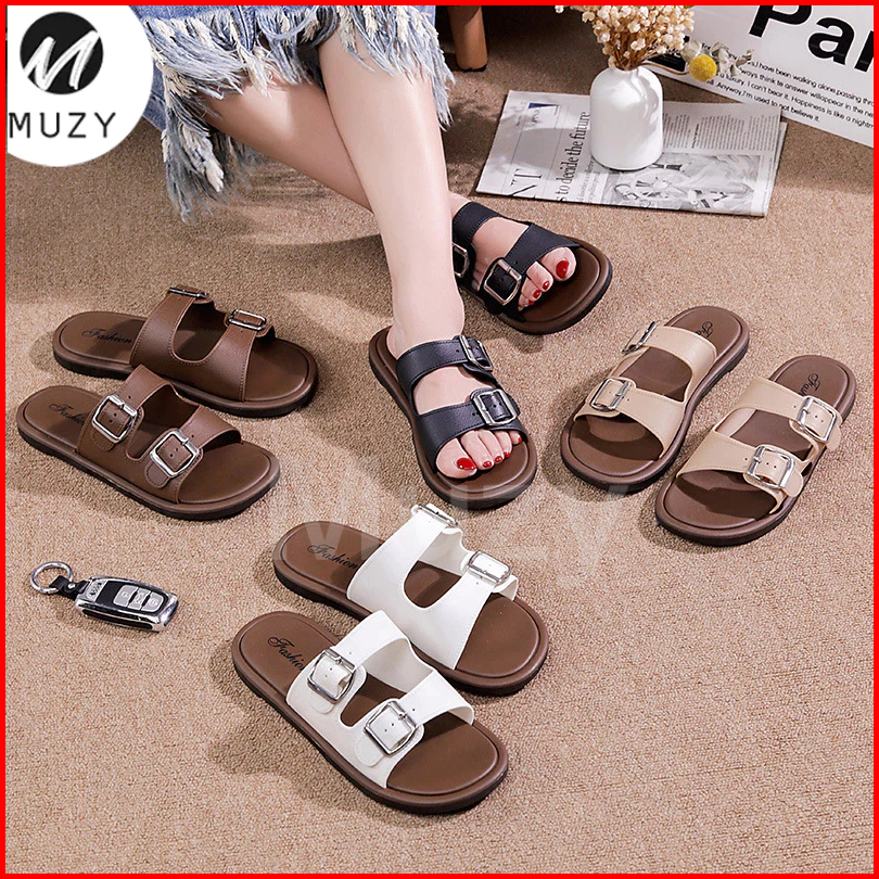 Muzy Sandal Slop Wanita Kekinian Sandal Flat Wanita Casual Anti Slip Sandal Selop Jelly Wanita Kekinian Hes110