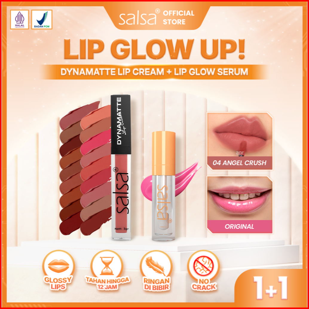 Buy 1 Get 2 Salsa Bundle Lip Glow Up - Lip Glow Serum Dynamatte Lip Cream Lipstick Lip Serum Pink Alami Waterproof Awet