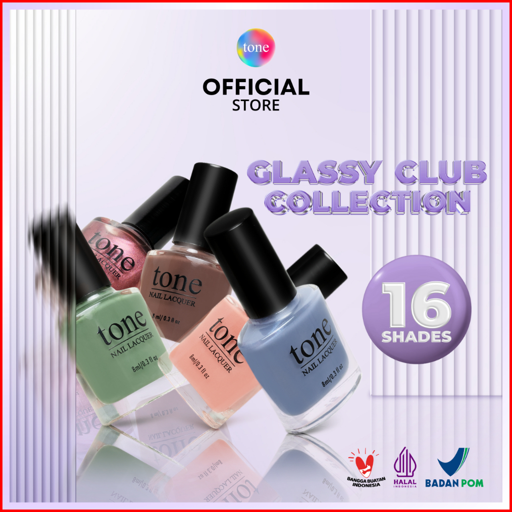 Tone Glassy Club Series Kutek Glossy Cat Kuku Mengkilap Nail Polish Kutek Halal Muslimah