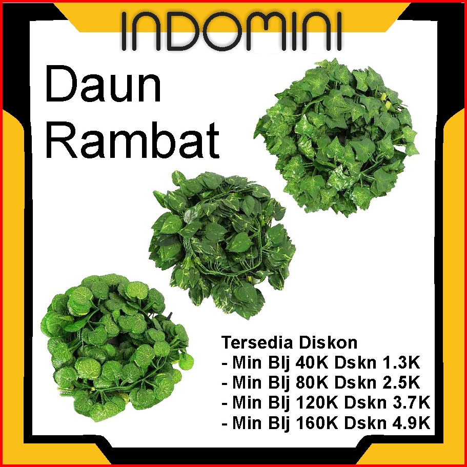 Indomini Daun Rambat Palsu Artificial Plastik Sulur Daun Imitasi Daun Hias Tanaman Gantung Hijang Sintetis Panjang 240 C