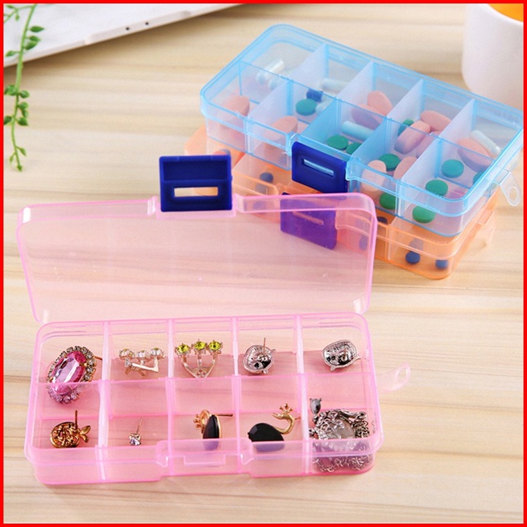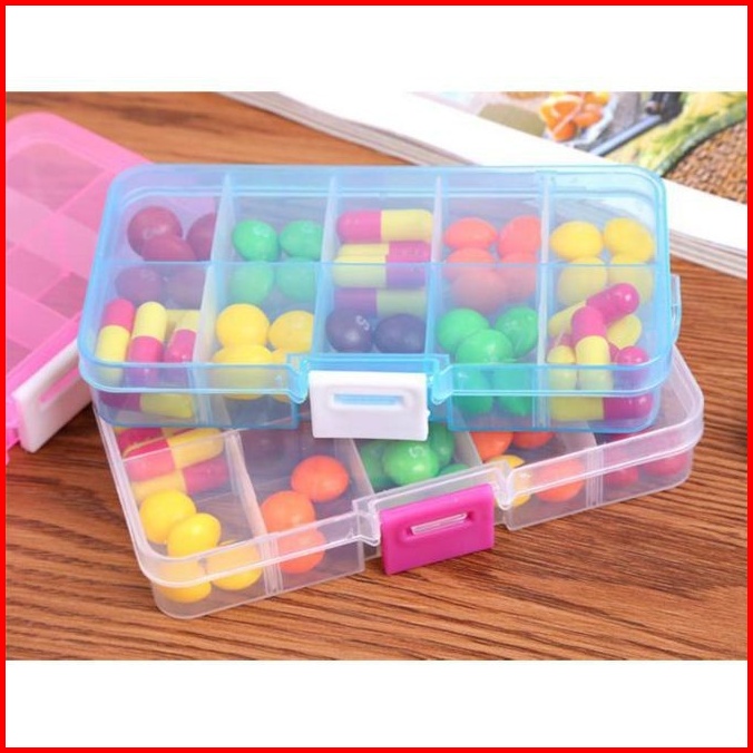 Indomini Tempat Penyimpan Obat 10 Sekat Kotak Obat Plastik Kotak Perlengkapan Aksesoris Cincin Anting Cincin Alat Jahit