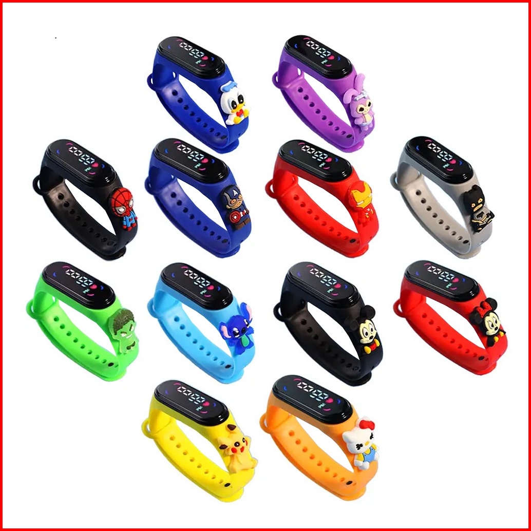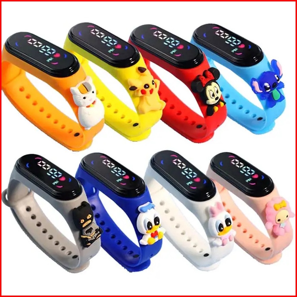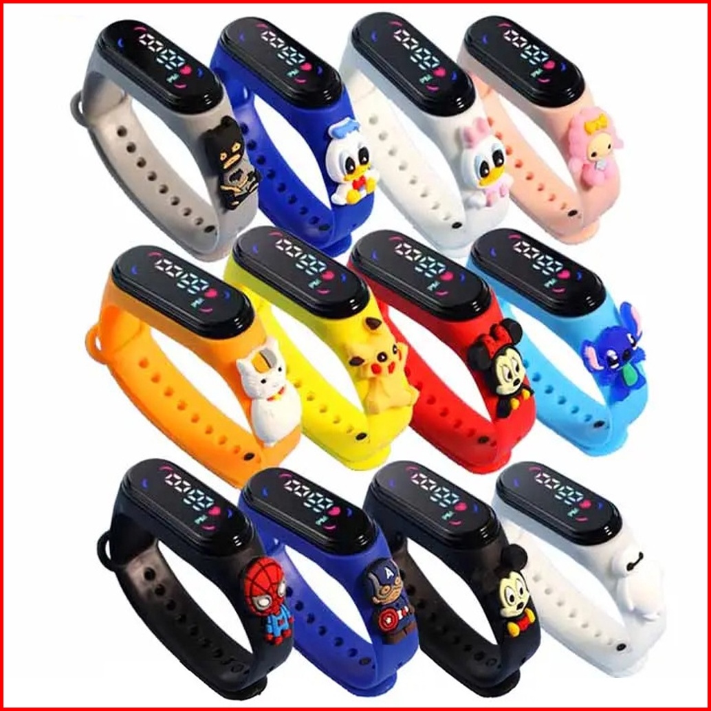 Indomini Jam Tangan Digital Elektronik Tahan Air Led Rubber Motif Kartun Anak Laki-laki Perempuan Pria Wanita Couple Dew