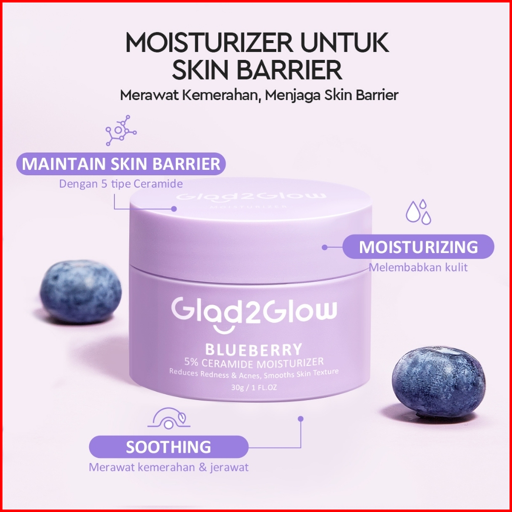 Glad2glow Facial Moisturizer 30gr Pomegranate 5 Niacinamide Brightening Moisturizer Blueberry 5 Ceramide Moisturizer