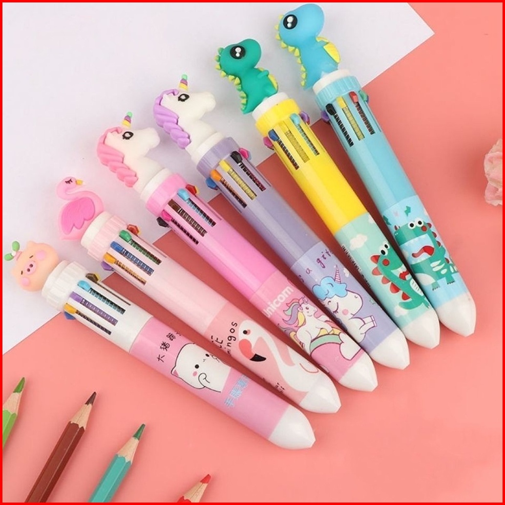 Indomini Pulpen Mekanik 10 Warna Tinta Karakter 3d Pulpen 10 Warna Motif Boneka S106