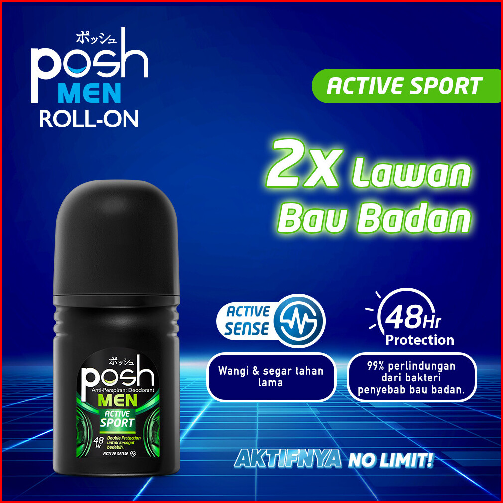 Posh Men Roll On Deodoran Active Sport 50 Ml X2
