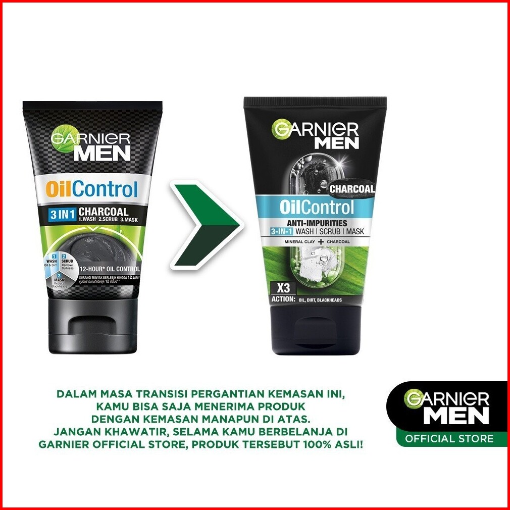 Paket Hemat Isi 2 Garnier Men Oil Control 3 In 1 Charcoal Foam Skincare 100ml Face Wash Sabun Cuci Muka Pria Face Wash P