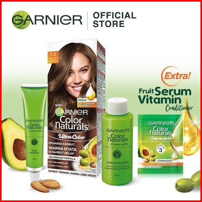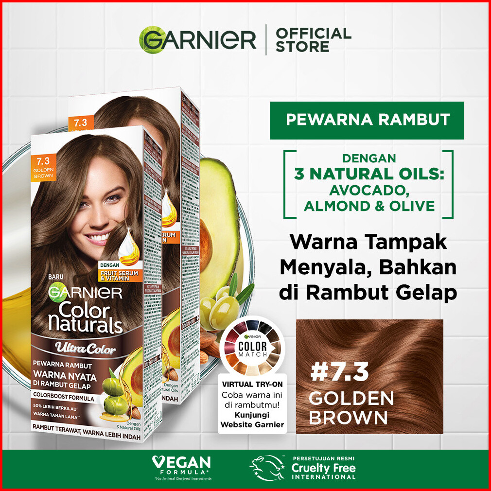 Garnier Color Naturals Hair Color - 7.3 Golden Brown Cat Pewarna Rambut Permanent - Twinpack