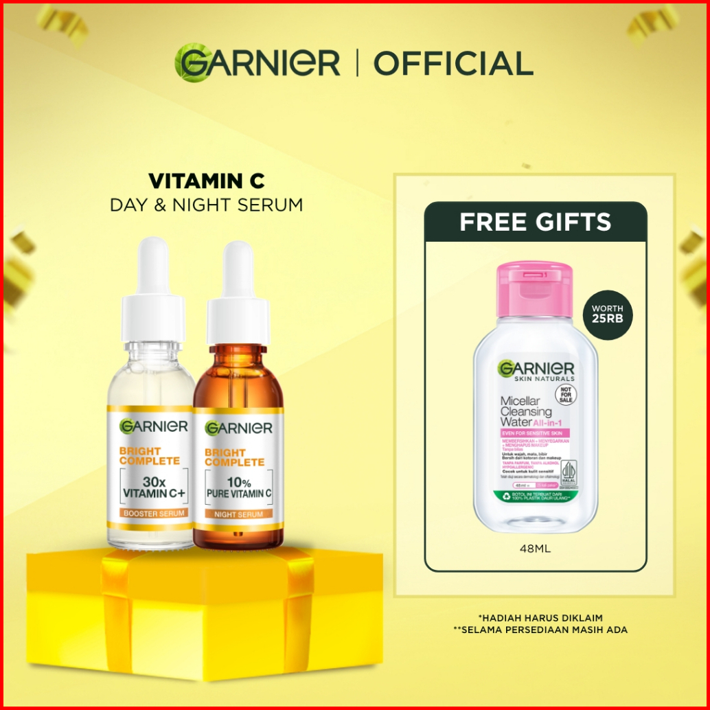 Garnier Paket Skincare Isi 2 Vitamin C Day Serum Night Serum 30 Ml Tone Up Serum Mencerahkan Wajah Paket Serum Pagi Mala