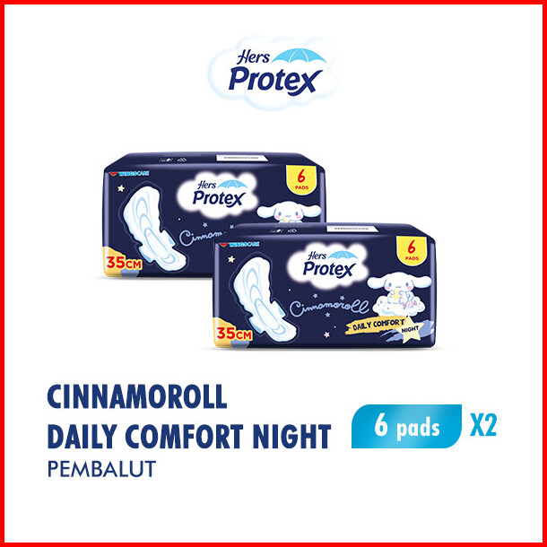 Hers Protex Comfort Night Pembalut Wanita 35 Cm Bag Isi 6 Pcs X2