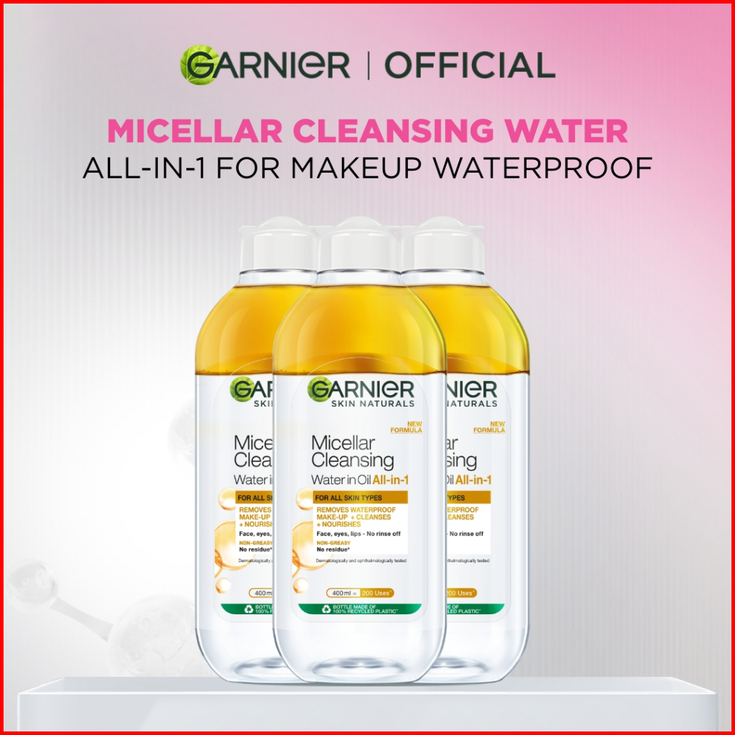 Paket Hemat Isi 3 Garnier Micellar Water Oil-infused Skin Care 400ml Skincare Cleansing - Pembersih Wajah Make Up Waterp