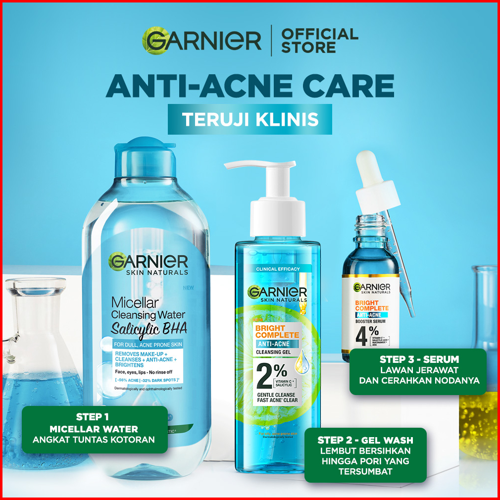 Garnier Bright Complete Anti Acne Gel Wash 120ml 2 Vitamin C Salicylic - Skincare Sabun Wajah Gel Brightening Lawan Jera