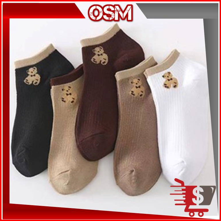 Osm K5674 Kaos Kaki Wanita Kaos Kaki Motif Beruang Kaos Kaki Pendek Semata Kaki Ankle Socks Korean Model Simple Cute