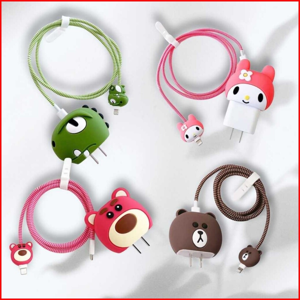 Osm - 6183 Set Pelindung Kabel Charger Lucu Set Pelindung Kabel 4 In 1 Set Cable Bite Karakter Set Pelindung Kabel Charg