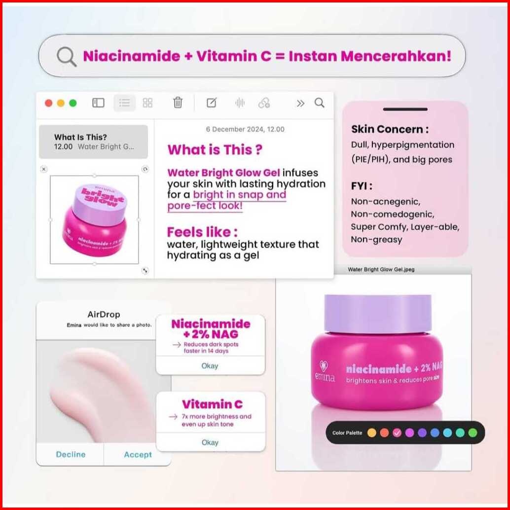 Emina Water Gel Moisturizer 30g Mencerahkan Mengurangi Flek Hitam 48h Menjaga Kelembapan Memperkuat Skin Barrier