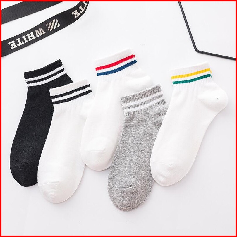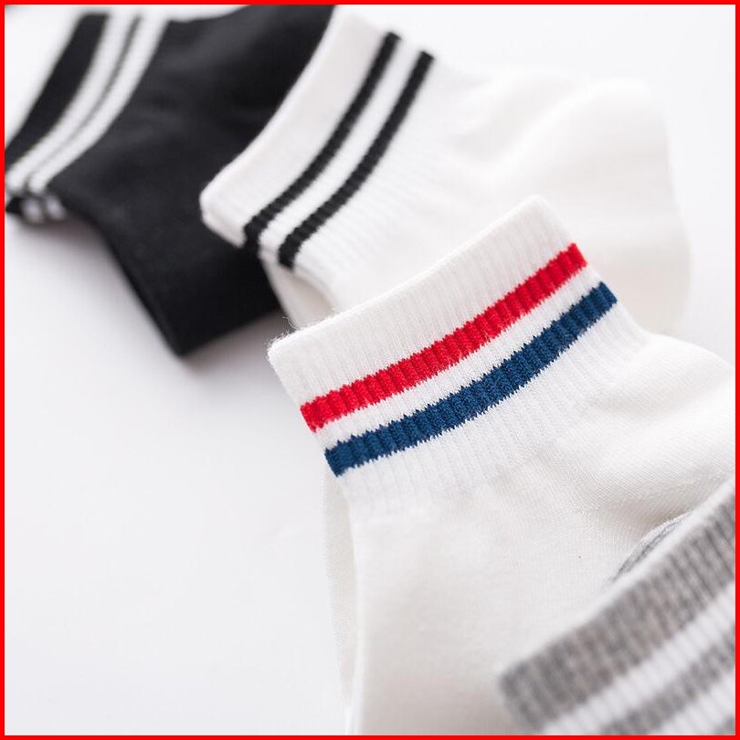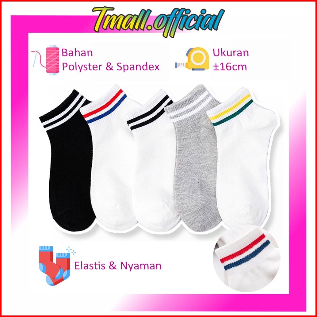 Tmall R140 Kaos Kaki Korea Style Casual Sport Motif Garis Bahan Katun Warna Polos Medium Sock