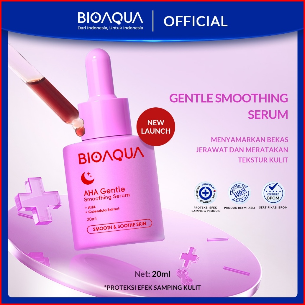 Bioaqua Serum Acne Aha Gentle Exfoliating Smoothing Serum Wajah 20ml Untuk Pori-pori Besar Kusam Kulit Kasar Bekas Jeraw