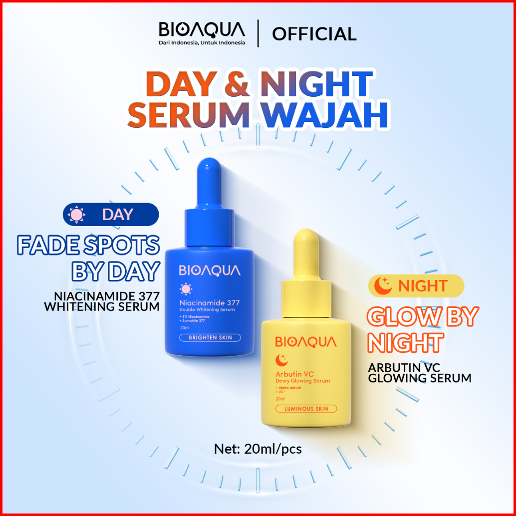 Bioaqua Day Serum Night Serum Arbutin Vc Dewy Glowing Serum Wajah Symwhite 377 Serum Whitening 20ml Serum Brightening Ef
