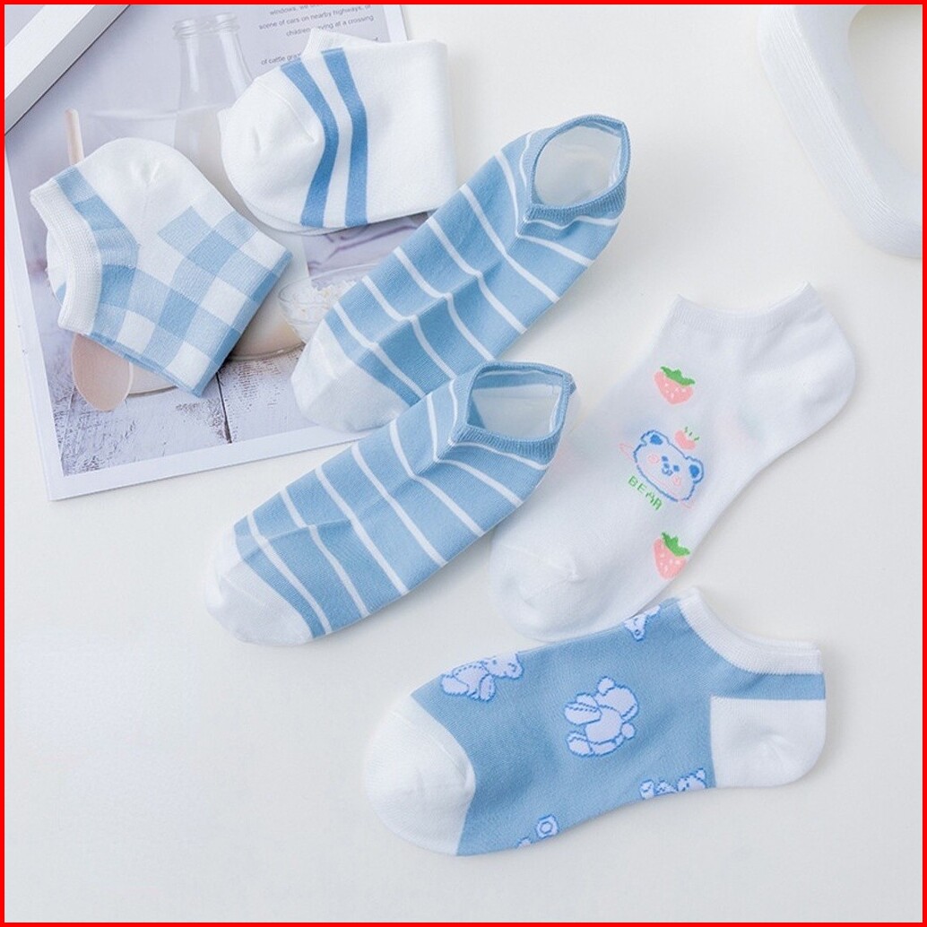 Tml Kaos Kaki Motif Kotak Kotak Biru Dengan Cetak Beruang Biru Kk154