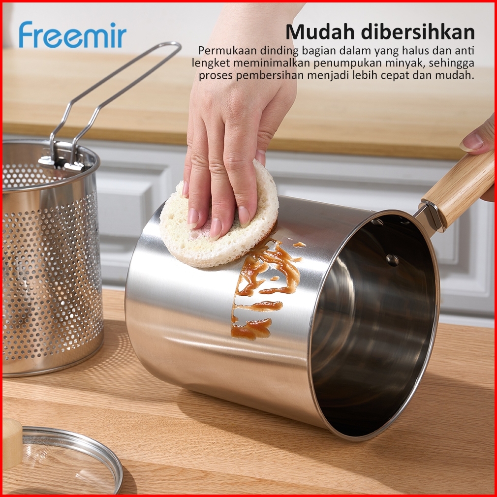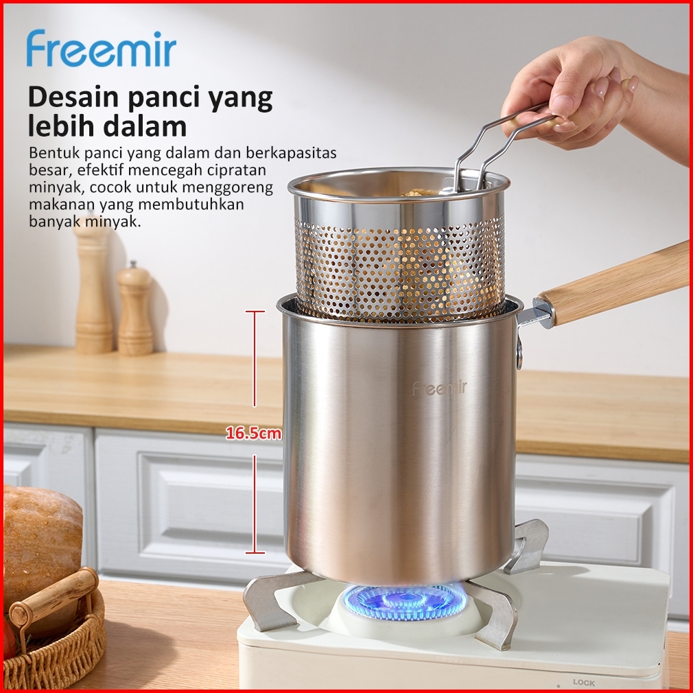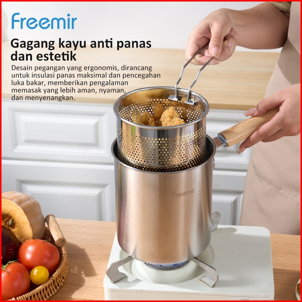 Freemir Lifestyle Deep Fryer Panci Penggorengan Rebus Stainless Steel Saringan Capitan Klip Makanan Panci Rebus Multifun