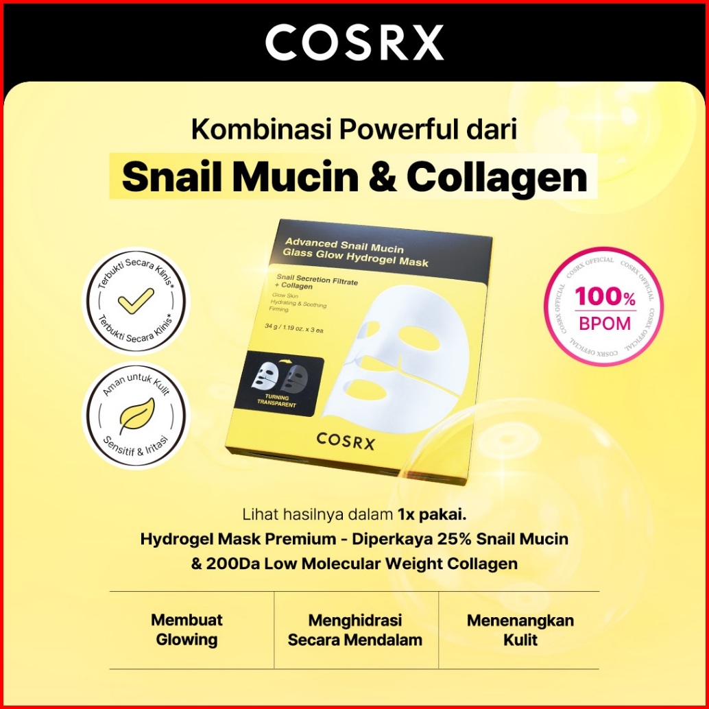 Isi 3 Cosrx Advanced Snail Mucin Glass Glow Hydrogel Masker