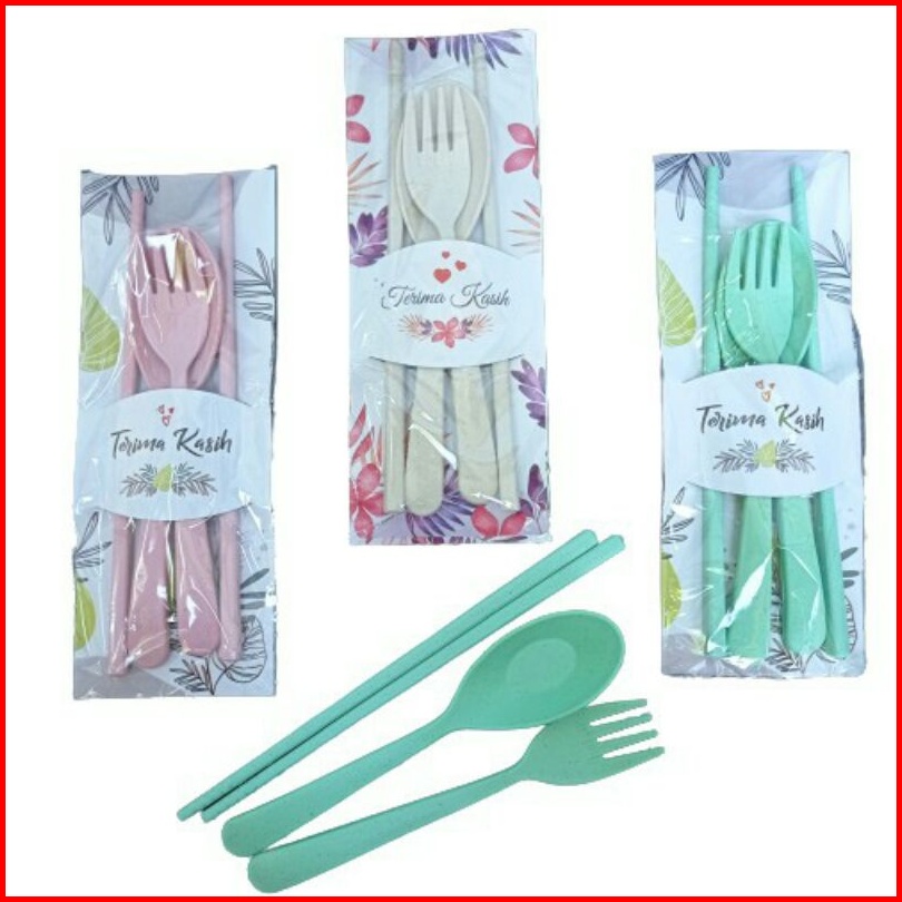 Souvenir Travel Set Lokal Kemasan Mika Motif Sendok Garpu Sumpit