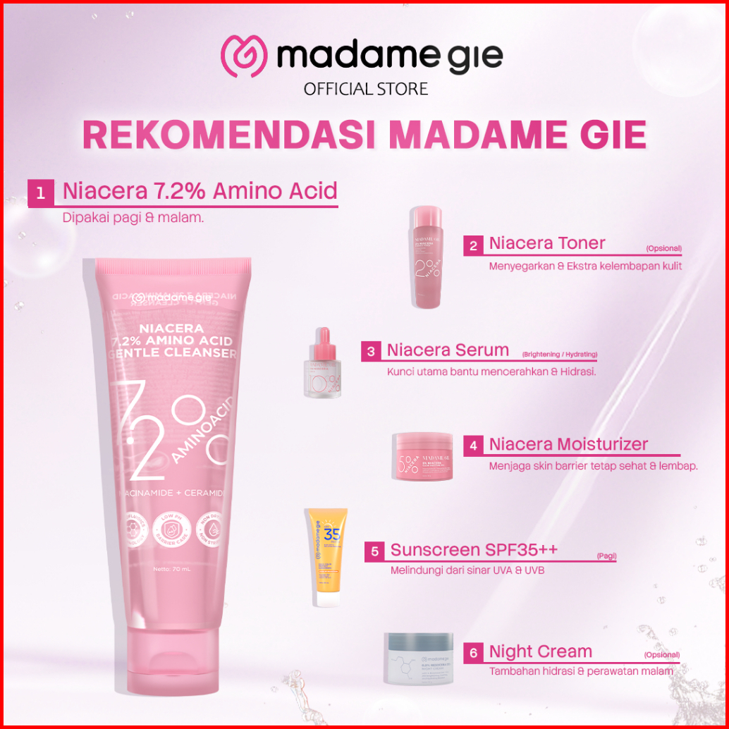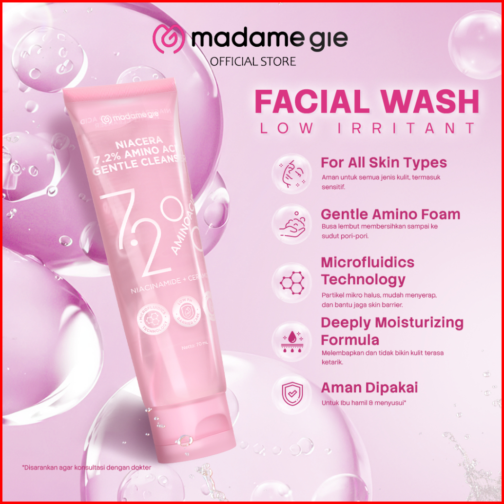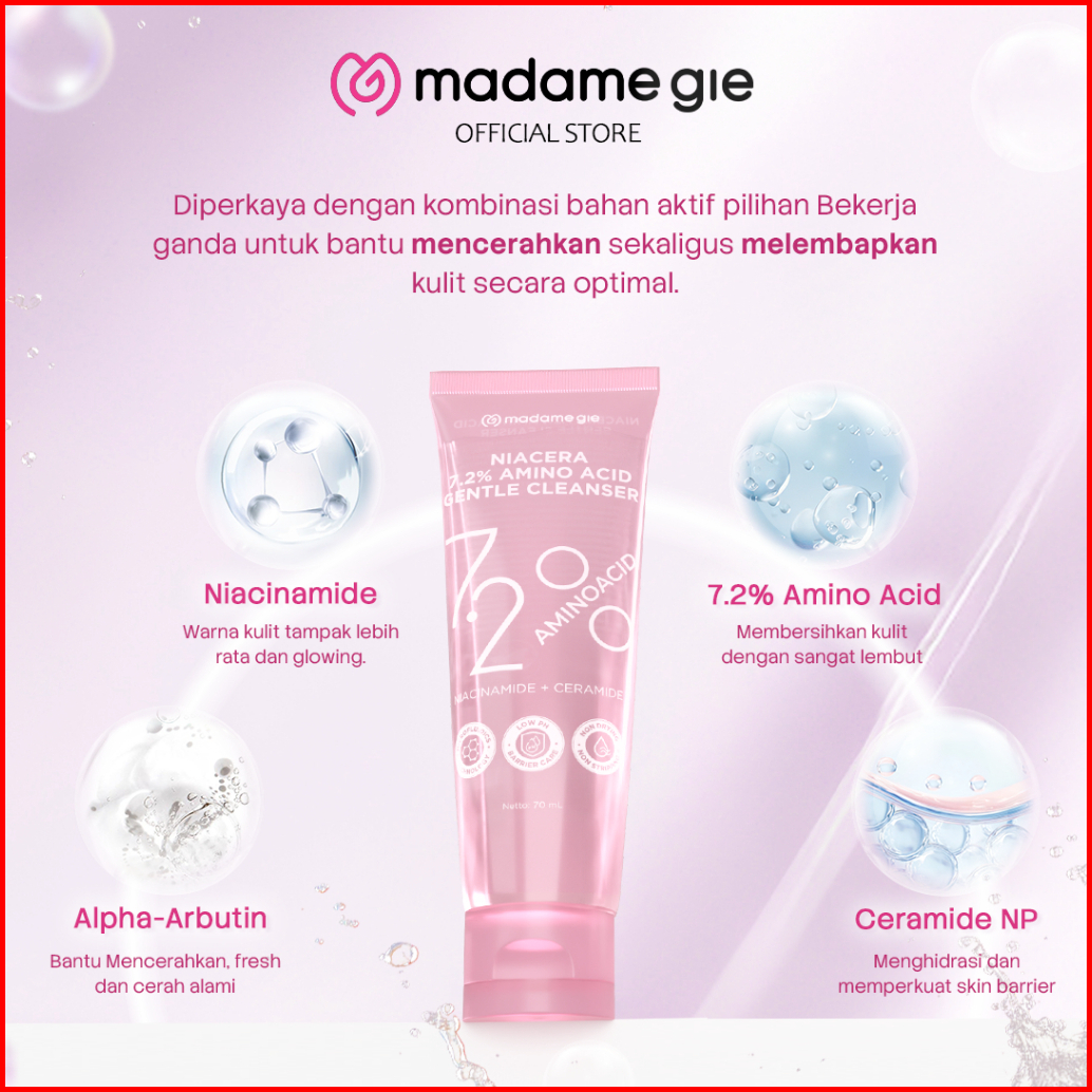 Free Gift New Launch Madame Gie Niacera 7.2 Amino Acid Gentle Cleanser - Skincare Wajah Low Ph Cleanser 5.5 Brightening
