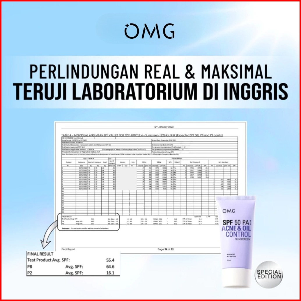 Omg Acne Oil Control Uv Barrier Sunscreen Spf50 Pa I Mengandung Mugwort Allantoin Salicylic Acid - No Whitecast