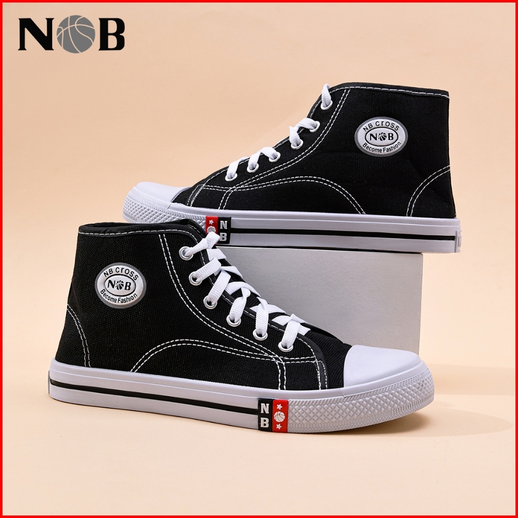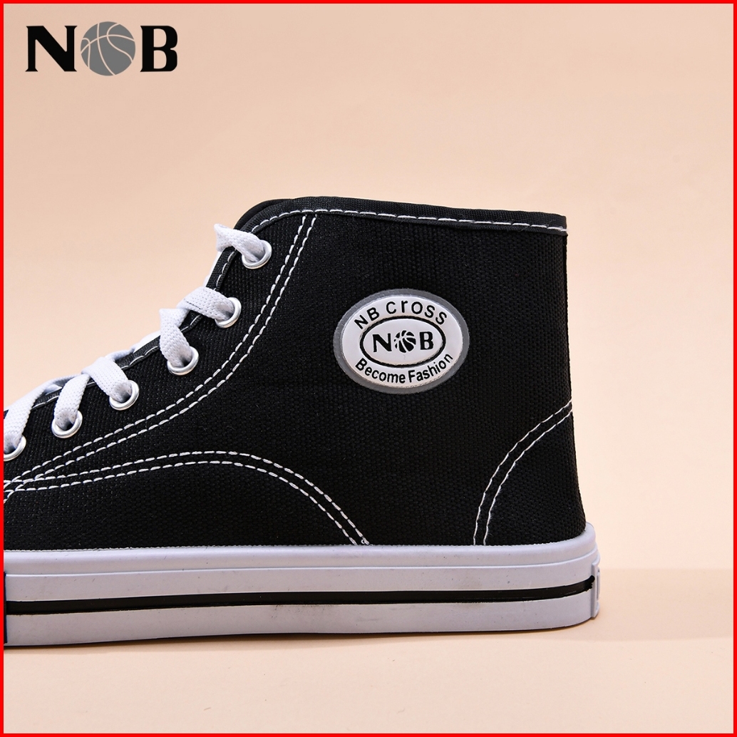 Nob Sepatu Sekolah Formal Tali Bahan Canvas Tinggi Sneakers Sekolah Hitam Cewek Cowok